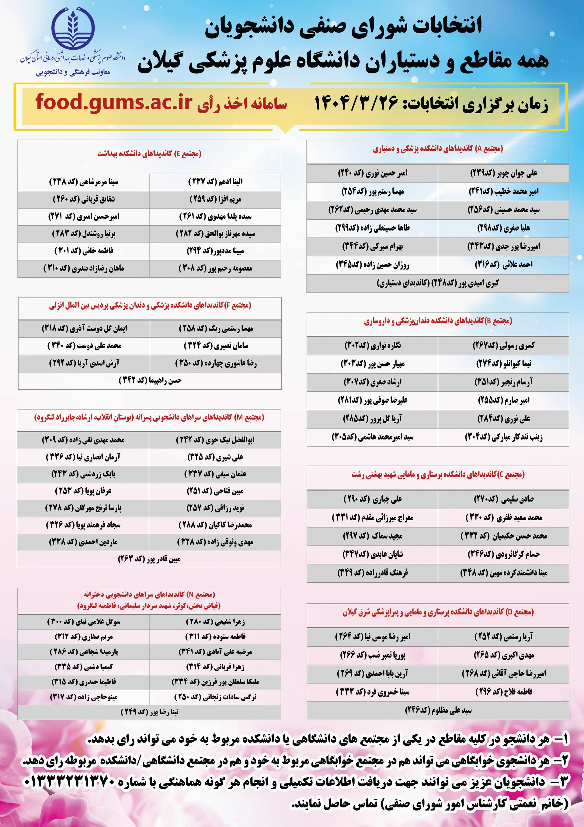 دانشجویان و دستیاران قبل از دادن رای به نکات زیر مراجعه کنند: